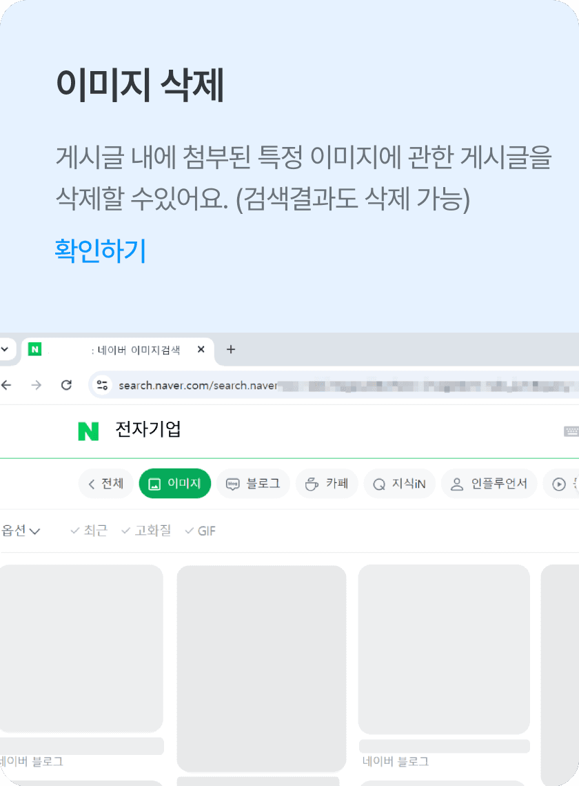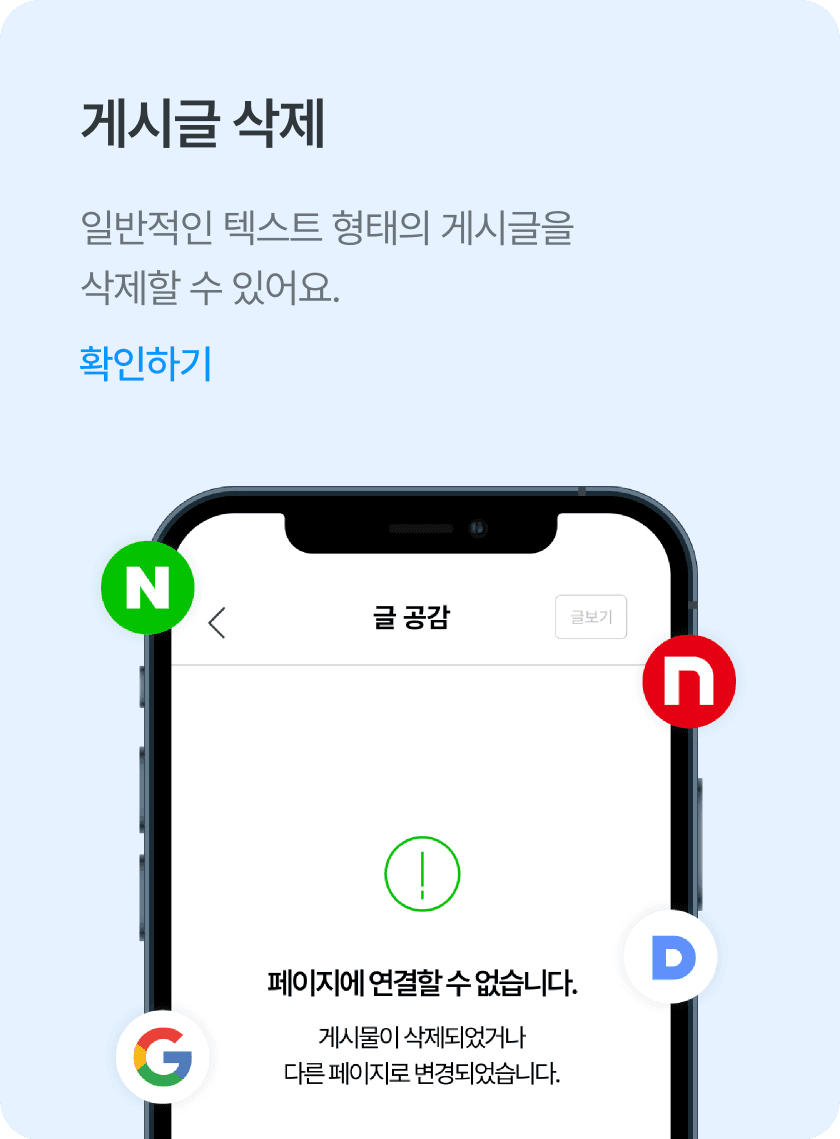 어떤 유형의 게시물이더라도 확실하고 빠르게 삭제할 수 있어요.