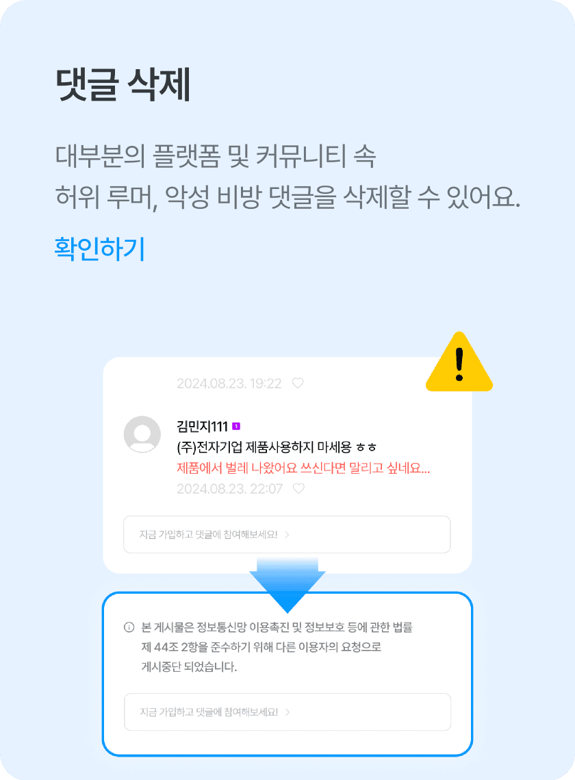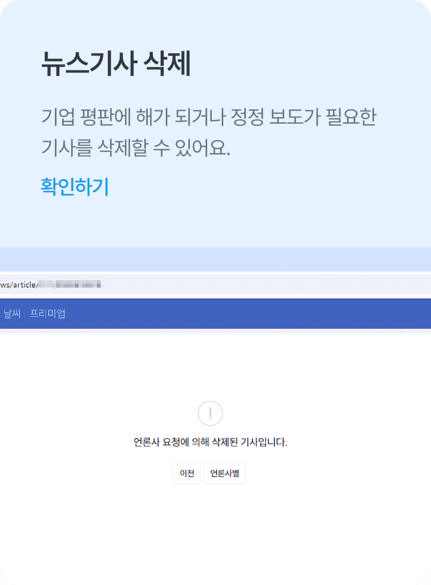 가짜뉴스 등 평판을 해치는 허위사실·명예훼손·모욕 게시글을 모니터링 하고 삭제할 수 있습니다.