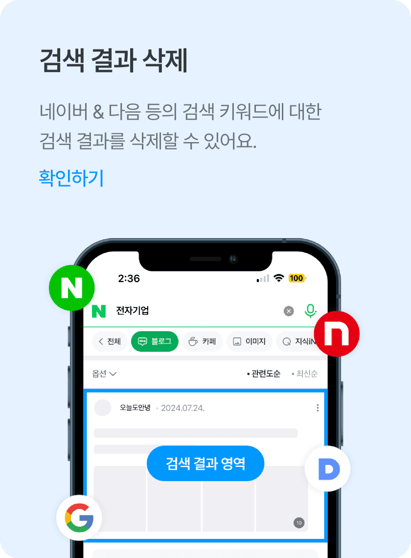 25만건의 게시글 삭제 경험을 통해 어떤 유형의 게시물이더라도 확실하고 빠르게 삭제할 수 있어요.