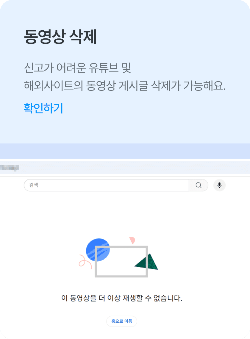 국내법 적용이 불가한 사이버 렉카의 가짜뉴스 및 악성 루머 영상 등 삭제가 어려운 해외 플랫폼의 삭제 성공 사례를 여럿 보유하고 있어요.
