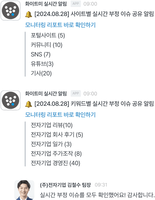 부정 이슈 실시간 알림 기능