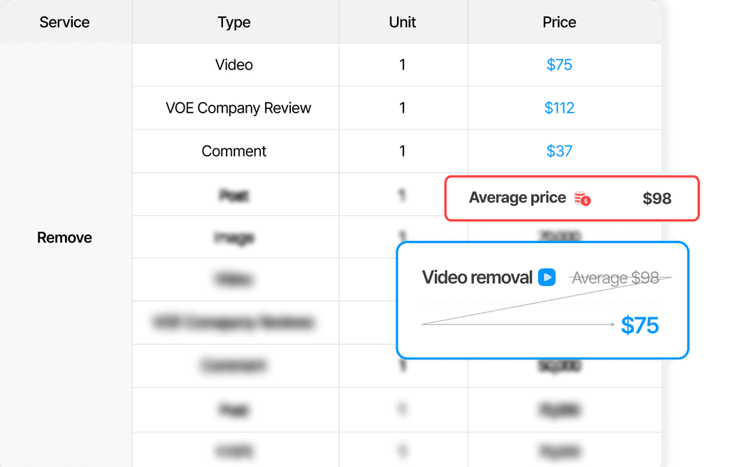 Our proprietary AI enables mass removals, significantly reducing processing time.