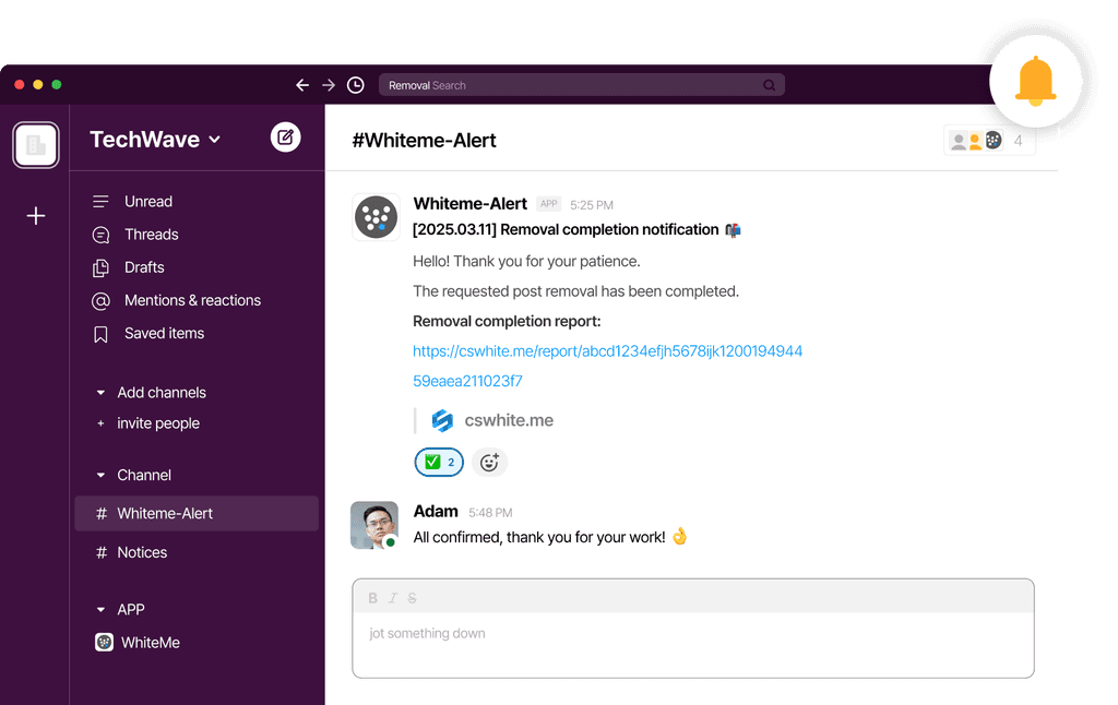 With the WhiteMe web app, you can check the progress of your removal posts anytime, anywhere.